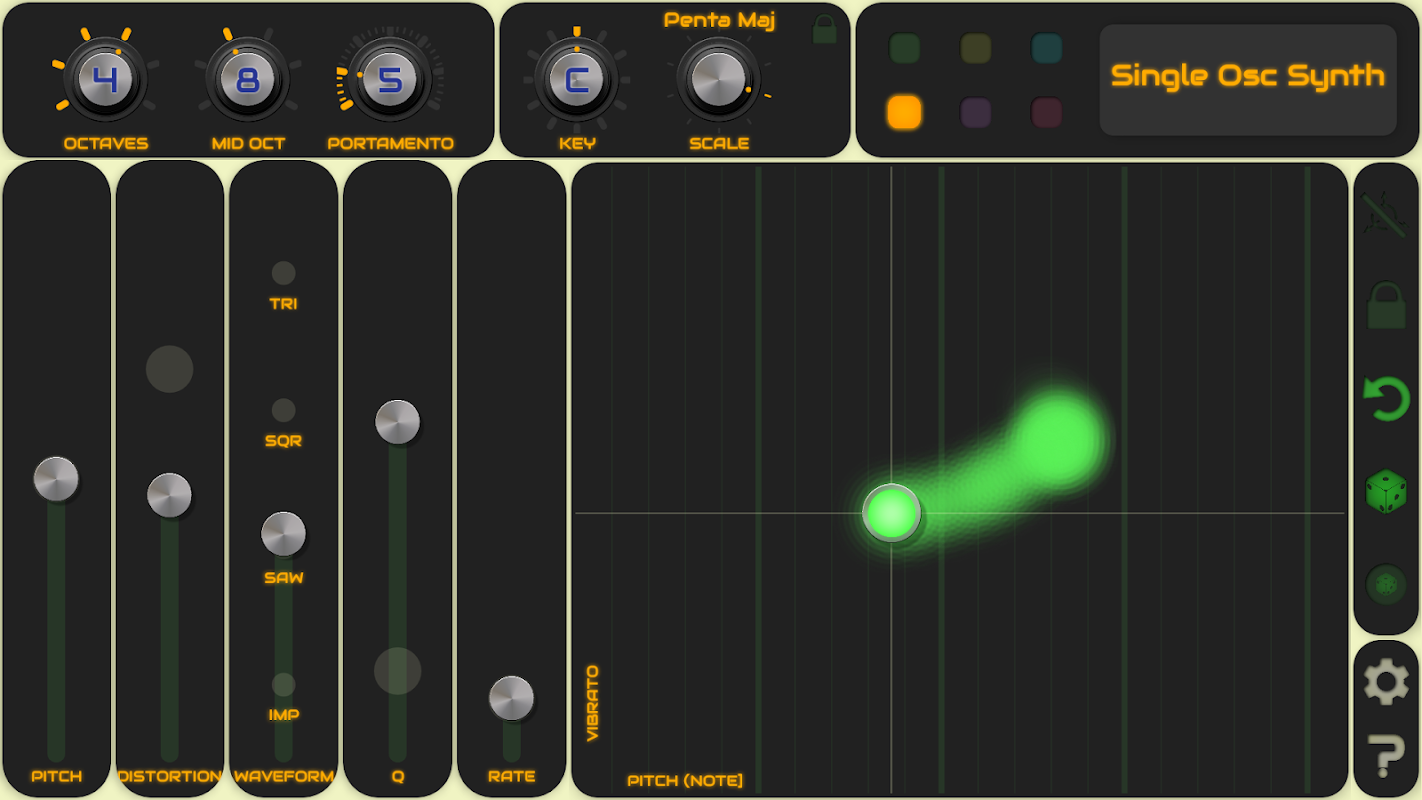 + Um eine einfache Schnittstelle zu zeigen, um die Klänge zu entwickeln und sich auch mit einer Hand zu verändern.