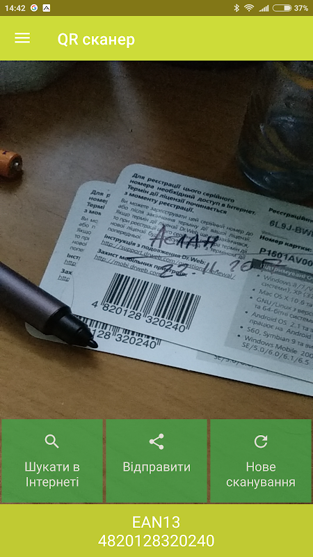 Der gescannte Code kann im Internet gesucht oder in eine andere Anwendung eingefügt – per E-Mail versendet, in Notizen gespeichert usw. werden.