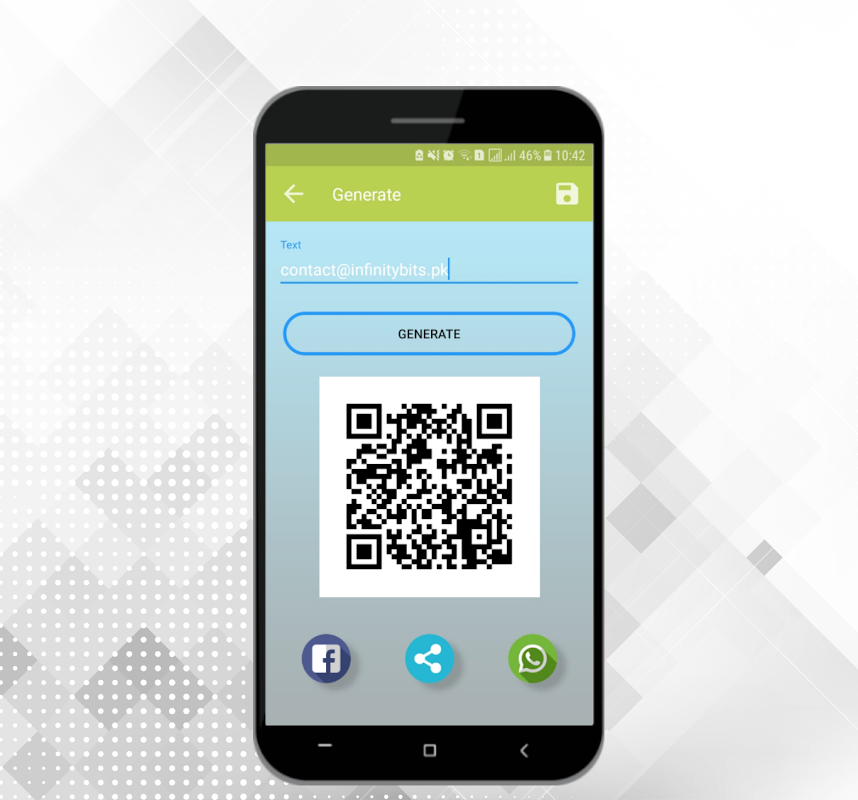 • Teilen Sie Bilder von generierten QR & Bar Codes.