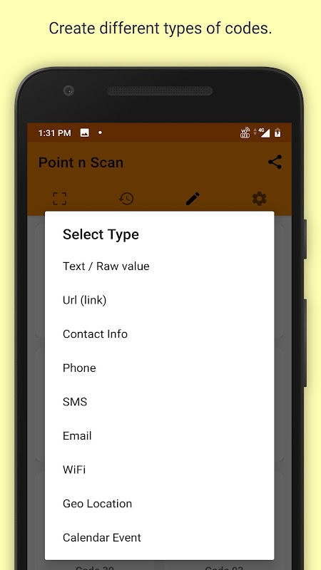 • Und scannen/erstellen Sie auch fast jeden anderen Typ mit Text/Rohwert.