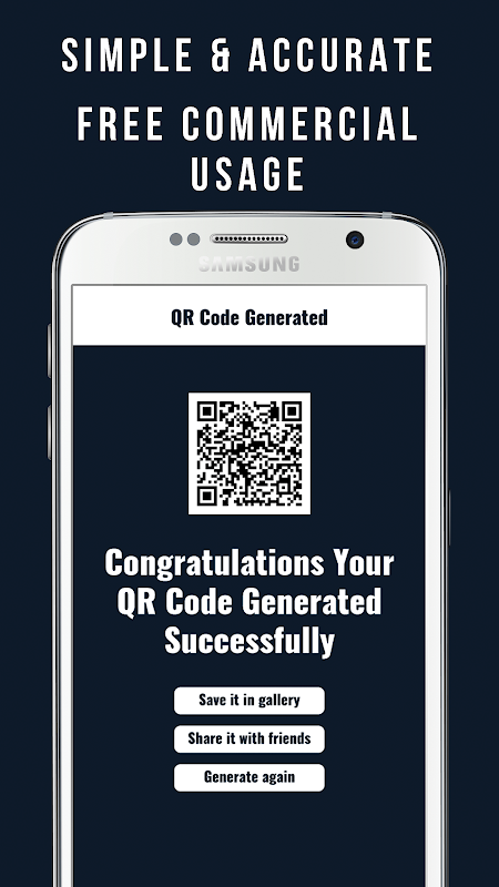 This application is very user friendly. It has very easy 3 step process. You can save your QR Code image in your gallery. You can share it with your friends or on social media.