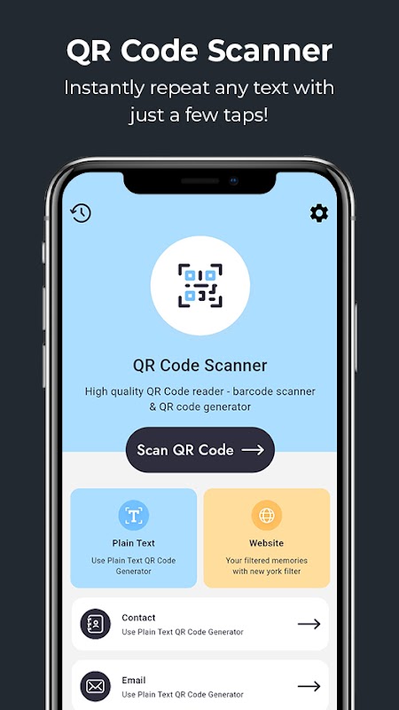 QR Code Generator & Scanner ist eine sehr einfache und nützliche Anwendung, mit der Sie Ihr eigenes benutzerdefiniertes Barcode-Bild erstellen können. Sie können dieses Barcode-Bild für Werbung, zum Austausch von Informationen und um Teil der modernen Welt zu werden, verwenden.