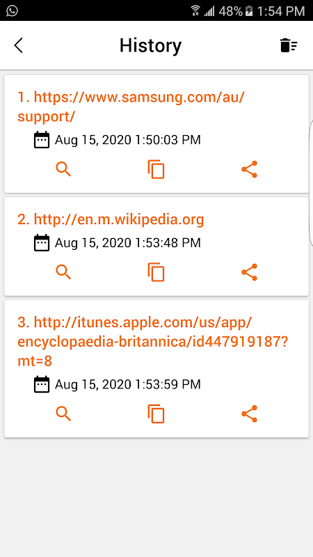 The app reads and loads the URL for web-linked content and shows the text for plain text content.