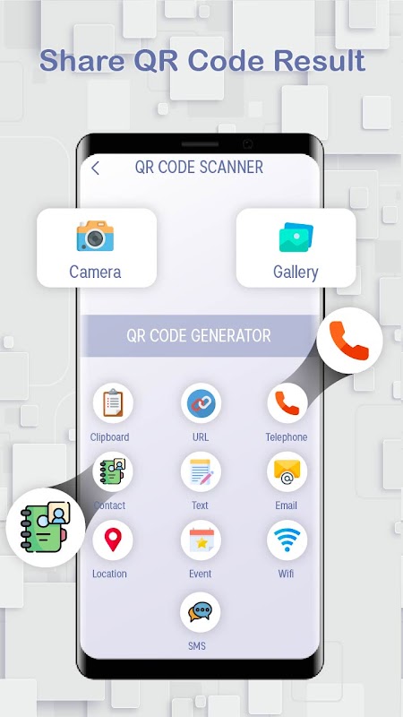 - QR Code Scanner for Wifi passwords, text, contact & location.