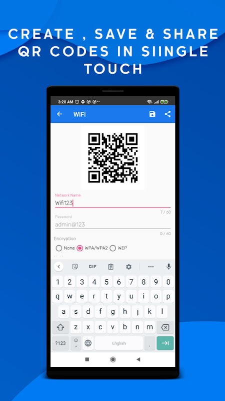 Other functionality: Create QR,Share your contact info via QR.