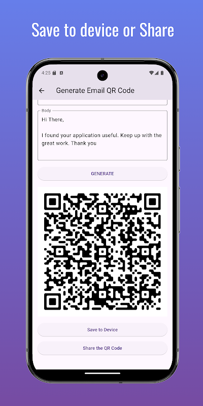 • Speichern Sie gescannte oder generierte QR-Codes direkt auf Ihrem Gerät.