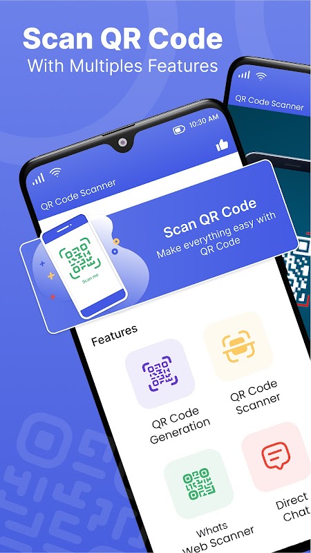 Whatscan for whats web is a web clone application. Now you get to sync all the Chat on the mobile where you have installed the Whats Web Scan or whats direct. You can use this application to open two accounts on the same device.