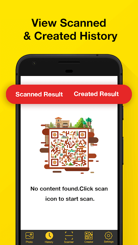 All your scanned results and created results will be included in the scan history and sorted by category. You can delete the scan results. We also divide history into history created and history scanned, you can find your different result easily.