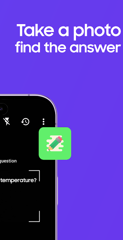 Öffnen Sie die App und identifizieren Sie die Frage, die Sie auf einem Foto festhalten möchten. Lassen Sie sich von der künstlichen Intelligenz schnelle Antworten liefern!