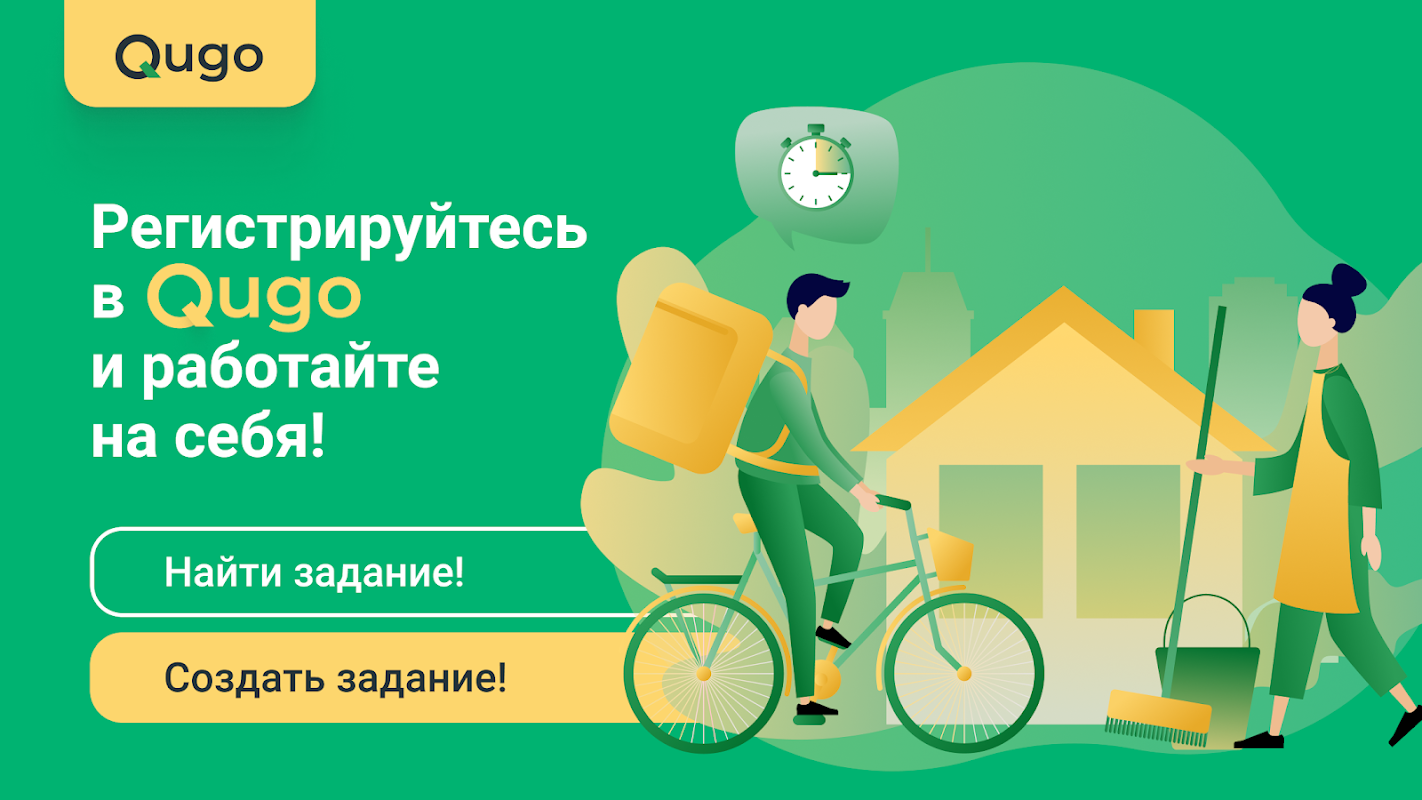 Diese Anwendung eignet sich für fast alle Gelegenheiten. Sie möchten beispielsweise einen Remote-Job finden und zusätzliches Geld verdienen. Kommen Sie zu QUGO und suchen Sie nach einer Vielzahl von Aufträgen: Übersetzen, Schreiben von Texten, Babysitter-Service und so weiter. Senden Sie Ihre Anfrage zur Auftragserfüllung und erhalten Sie eine hervorragende Gelegenheit, zusätzliches Geld zu verdienen. Oder Sie brauchen Helfer in Ihrer Nähe, Klempnerarbeiten, Hausreinigung, Handwerker, „Ehemann für eine Stunde“, Lader, Techniker, Bauarbeiter, Wohnungsreinigung, Müllabfuhr usw. - gehen Sie zu QUGO und suchen Sie nach den geeigneten Darstellern.