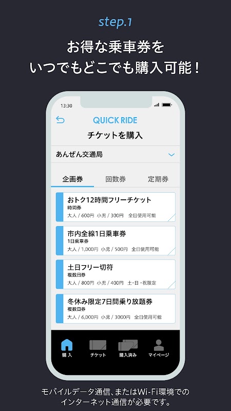 Wenn Sie das Ticket am Veranstaltungstag nicht kaufen, können Sie es möglicherweise nicht kaufen oder verlieren. "QUICK RIDE", das diesen Ärger löst, indem Sie einfach ein Smartphone kaufen und den Bildschirm zum Fahren anzeigen!