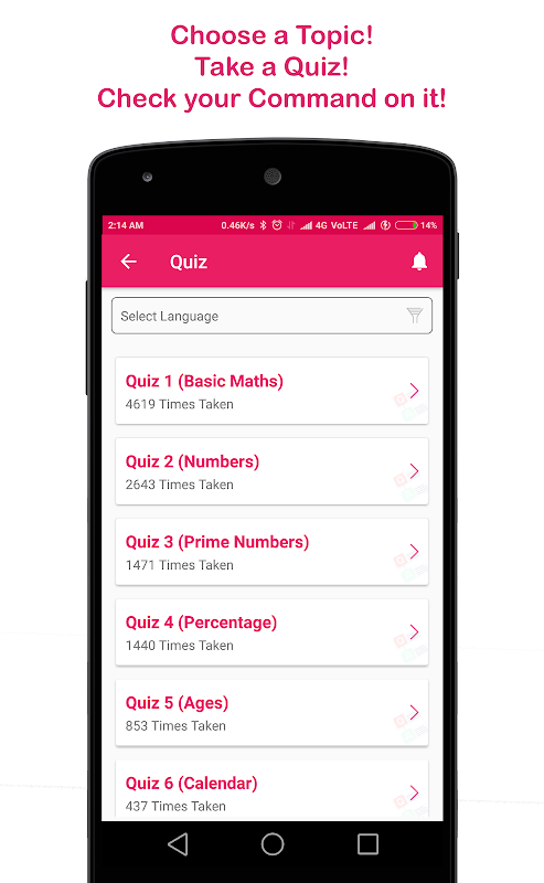 Quizzes are shared topic wise. Quiz topics includes quiz on basic maths, numbers, prime numbers, percentage, ages, calendar, LCM, fractions, square and square root, cube and cube root etc.