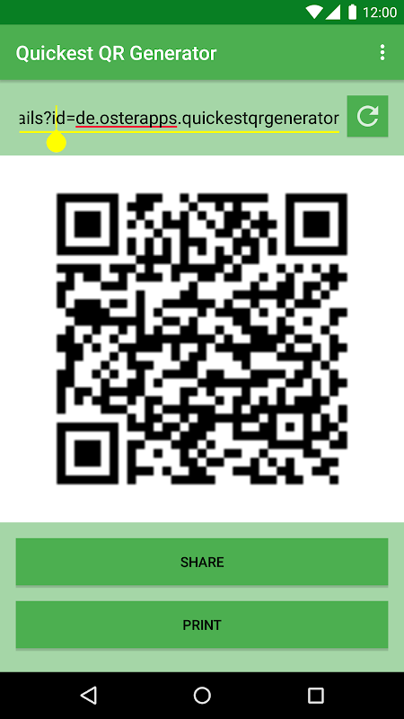 Sende Links aus anderen Apps zu dieser. Der QR Code wird direkt erstellt und kann weiter geteilt oder direkt gedruckt werden.
