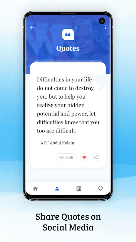 Diese Anwendung ist einfach zu handhaben und eine Quikie zu. Sie wählen nur den Autor und Kategorie wird eine Liste der Zitate auf Ihrem Handy-Bildschirm fällt. Sie erhalten die Möglichkeiten, es zu teilen. Wählen Sie, dass Sie wollen, und hier gehen Sie.