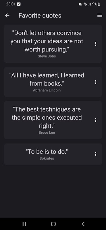Quotes ist eine mobile App, die Ihnen Zugriff auf eine endlose Quelle der Inspiration und Weisheit bietet. Tauchen Sie ein in die Welt der Zitate berühmter Persönlichkeiten, historischer Persönlichkeiten, Schriftsteller, Philosophen und mehr und finden Sie Motivation, Wissen und Trost in ihren Worten.