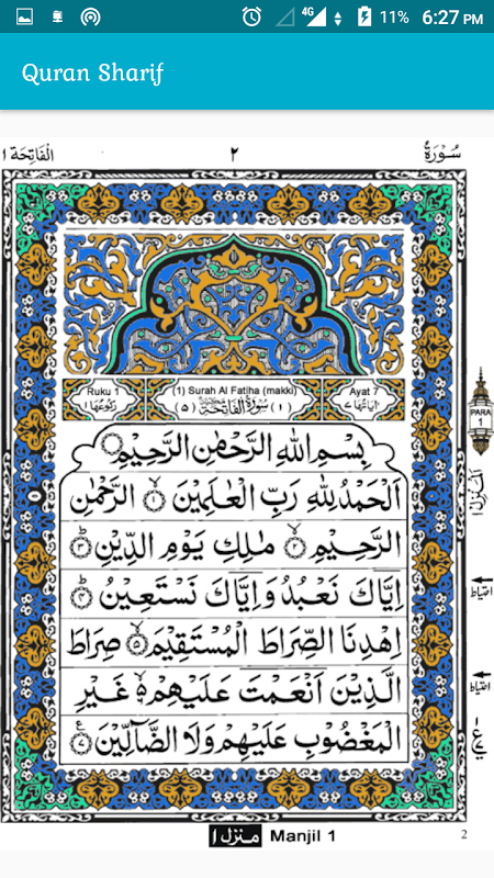 The application ( Quran Sharif, Quran Sharif Pro, Learn Quran Sharif ) (No Ads) allow to Open any Juz or Surah directly from index. It has all 30 chapters and 114 surahs, long tap to view information about it. Resume option will take you to the page where you left reading last time. With go-to page number option you can jump to a page instantly.