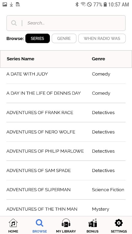 Mit tollen Serien wie Sam Spade, Jack Benny, Johnny Dollar, Fibber McGee und Molly, The Green Hornet, Life of Riley und vielen anderen. Mit einem optionalen Abonnementservice können Sie bei Bedarf aus einer riesigen Bibliothek mit Tausenden von klassischen Radioprogrammen weitere Programme streamen und herunterladen.