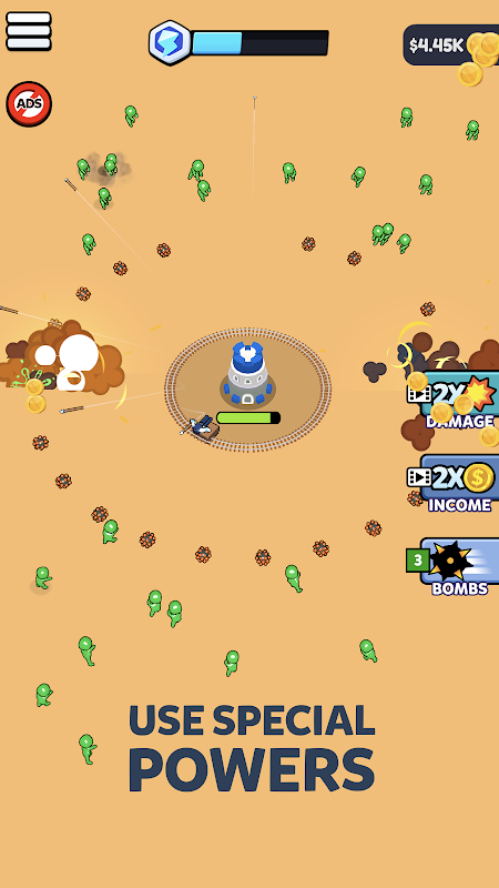 Verstärke deine Verteidigung mit Spezialkräften und Waffen.