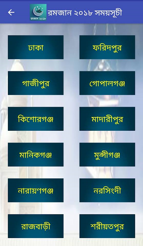রমজান ২০১৮ এর বাংলাদেশের সকল জেলার সময়সূচী :-