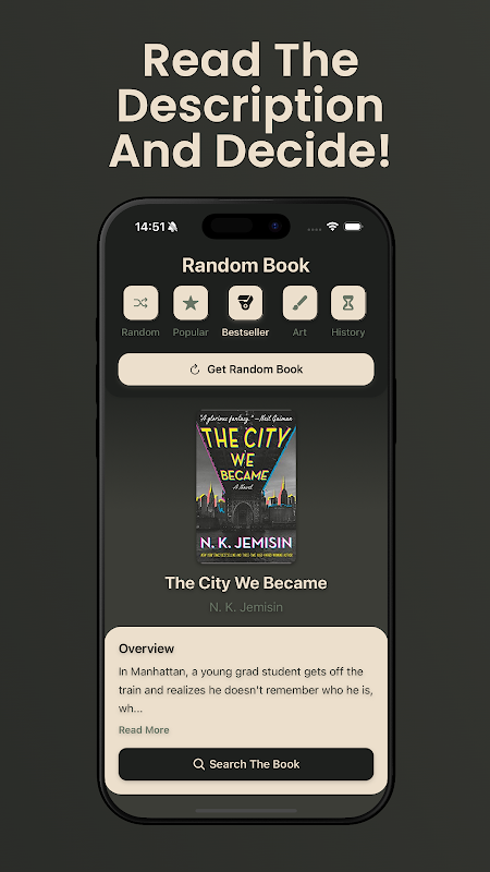 Fällt es Ihnen schwer, Ihre nächste Lektüre zu finden? Random Book kann Ihnen helfen, das perfekte Buch zu finden! Mit unserer zufälligen Buchauswahl erhalten Sie Empfehlungen aus einer Vielzahl von Kategorien, die Ihrer Stimmung und Ihren Interessen entsprechen. Von beliebten Titeln bis hin zu versteckten Schätzen bietet Ihnen unsere App Bücher aus verschiedenen Genres.