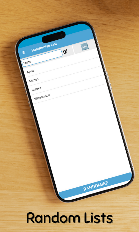 • Holen Sie sich in Sekundenschnelle ein zufälliges Element aus Ihrer Liste – tippen Sie einfach auf, um es zufällig auszuwählen!