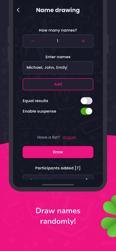 Sie können auch zwischen vorher ausgewählten Zahlen oder Teilnehmern auslosen. Einfach eingeben und die App entscheidet automatisch!