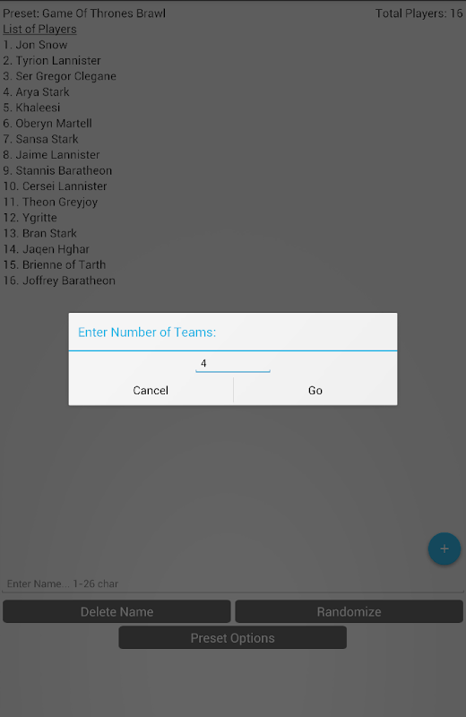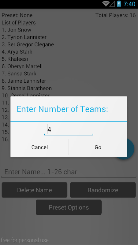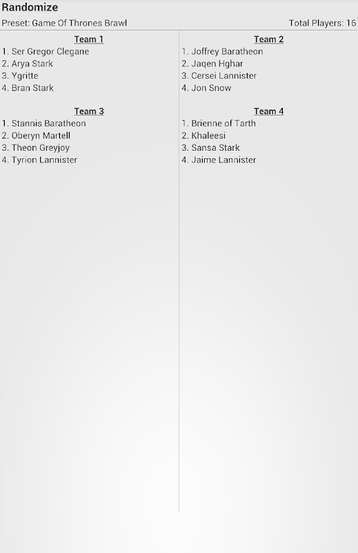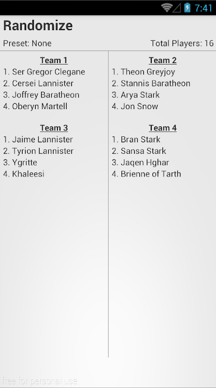 Random Team Generator is a quick little tool for games, parties, and other social gatherings for people who want to randomize their teams quickly and efficiently. Simple as that!