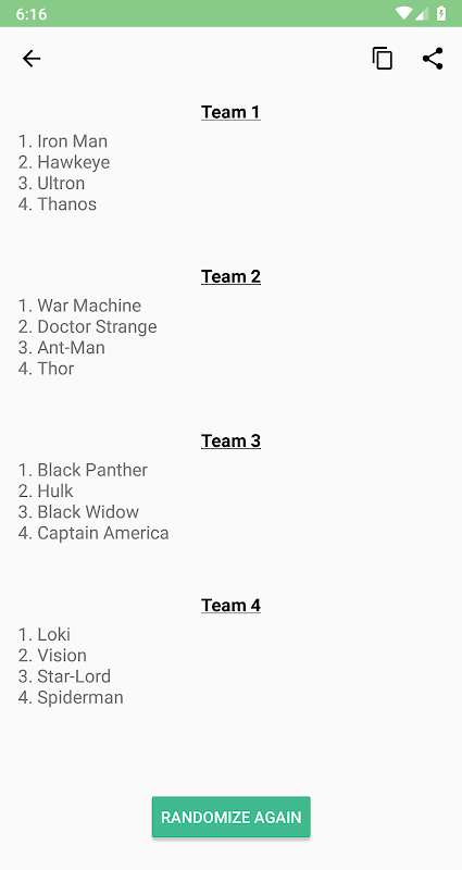 Mit APKPure können Sie Random Team Generator APK einfach und sicher mit Signaturüberprüfung herunterladen.