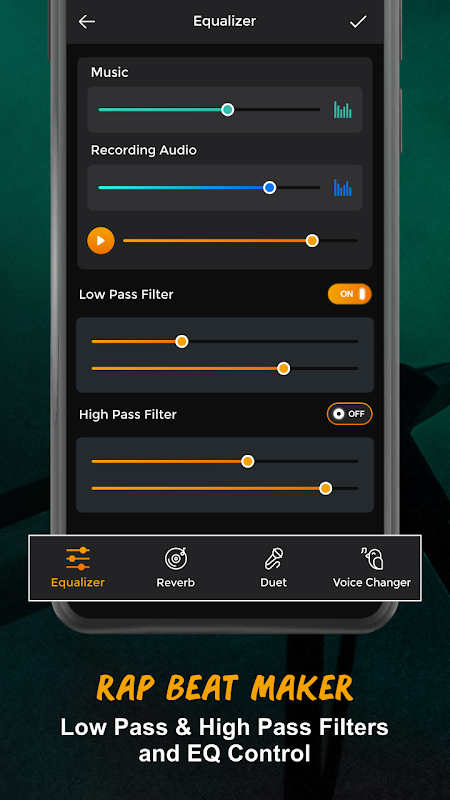 Rap Maker - Rap Music Beat Recording Studio bietet Ihnen eine Plattform, auf der Sie einen Rap-Song mit Ihrer eigenen Stimme erstellen können. Diese Anwendung hilft Ihnen bei der Aufnahme Ihrer persönlichen Musik. Die Anwendung verfügt über eine eigene Sammlung von Audios, die zum Erstellen schöner Rap-Audios verwendet werden. Sie können Ihre Rap-Beats komponieren, indem Sie mit dieser App einige überwältigende Musikrhythmen mischen. Rap Maker bietet Ihnen eine tolle Auswahl an freien Beats, Sie können dann automatische Gesangstune-Effekte anwenden, um Ihre Stimme über einem dope-Hip-Hop-Beat zu bearbeiten. Nehmen Sie Ihre Stimme innerhalb einer Minute über das Tonstudio auf und teilen Sie sie mit Ihren Freunden!