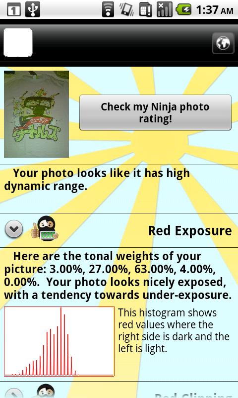 Die DSLR-Ninja werden Ihre Fotos bewerten und zeigen Ihnen Details über sie.
