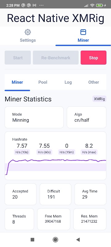 React Native XMRig 1.2.2