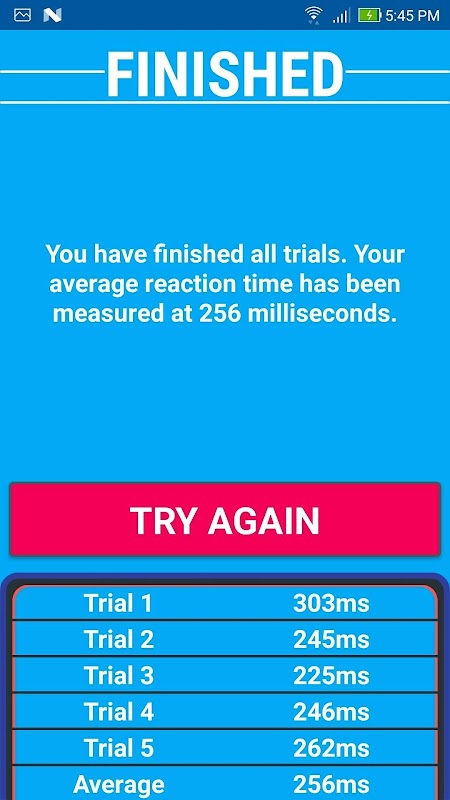 Füllen Sie insgesamt 5 Studien einen endgültigen Durchschnitt Ihrer Reaktionszeit zu erhalten.