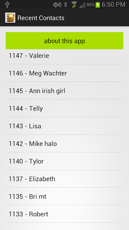 This is a light-weight app that lists your contacts in reverse chronological order, putting the most recently added contacts at the top. This is useful for when you forget the name of someone you have recently met. It also can be used as a "to contact" list, to remind you to follow up with people you've recently met, whether they are business contacts or friends.