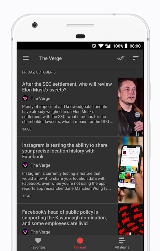 🌟 Readability view lets you read full articles for partial RSS content while providing consistent reading experience, activate it by double tapping (Provided by Mercury Parser)