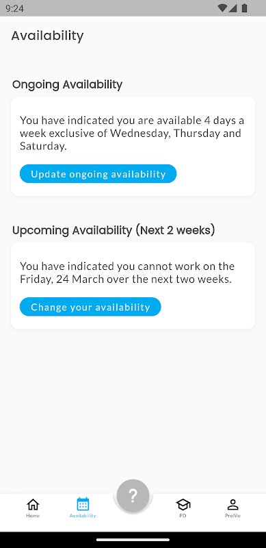 Verwalten Sie Ihre tägliche und laufende Verfügbarkeit mit anzuk über Ready 2 Work. Ready 2 Work gibt Ihnen auch die besten Chancen, regelmäßige Arbeit zu erhalten, indem Sie unser Team benachrichtigen können, wenn Sie aufstehen und „Ready 2 Work“ sind!