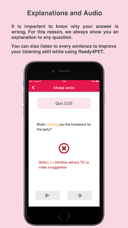 Ready4PET is innovative, efficient and FREE! It is the best App for those who have an intermediate level of English. This App is mainly directed to help you prepare yourself for the PET Cambridge English exam.