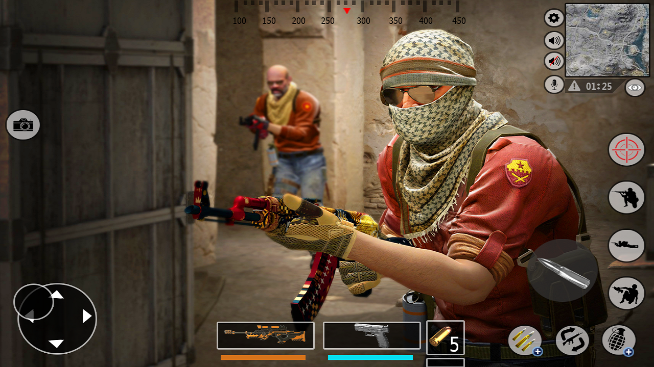 Lade das neue kostenlose Shooting War 3D herunter, um alle Modi des echten Kriegskampfs zu spielen. Diese aufregenden Multi-Kampf-Action-Modi umfassen Angriffsschießen, Bergkriegsmodus, Death-Shooter-Match und Team-Todeskampf für die Soldaten, die es lieben, aufregende Terroristen-Schießspiele kostenlos mit Freunden zu spielen. Schließe dich der Kriegslobby an und tauche den Armee-Truck auf das Kriegsfeld, um feindliche Angriffe auf dein Kommando-Basislager zu bekämpfen. Verteidige deine echte Armee gegen alle Counter-Strike-Terroristen, die sich deinem Armee-Basislager nähern. Ziele und halte den Waffenknopf gedrückt, um deine Erzrivalen im Handumdrehen zu töten.