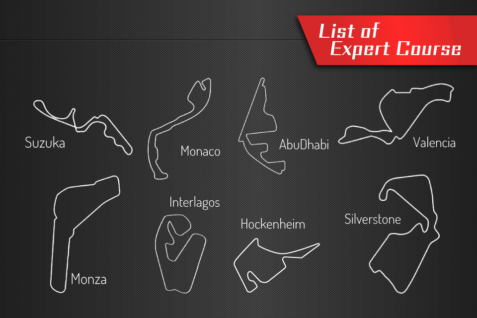 Expert-Modus bietet die Renngeschwindigkeitsdaten von Rennkarten fahren auf berühmten Kurse aus der ganzen Welt, können Sie die Chance zu geben, die Aufregung der Rennen auf realen Kursen zu erleben.
