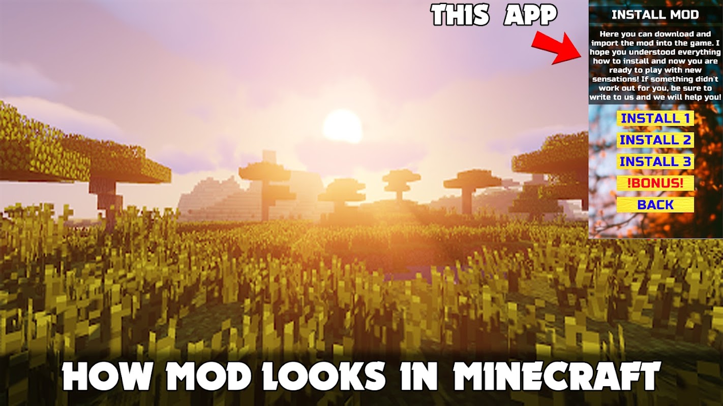 This is an unofficial app. Name, brand and assets are the property of the owner Mojang AB. The application helps to install and familiarize yourself with the mod for the game Minecraft, this is not a game, but an add-on with instructions!