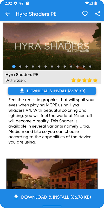 Diese Shader-App ist die perfekte Ergänzung, um das Spiel viel realistischer und lebendiger aussehen zu lassen. Eines der wirklich coolen Features ist, dass es so aussieht, als würde der Wind durch das Gras und die Blätter wehen und sie in Bewegung versetzen. Die Schatten wurden stark verbessert, wodurch sie realistischer aussehen, und wie Sie in den Bildern weiter unten sehen werden, hat dies einen großen Einfluss auf die Grafik.