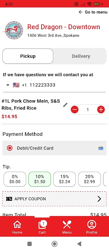 1. Holen Sie sich die Red Dragon Online-Bestell-App und bestellen Sie bequem von überall auf Ihrem Android-Handy und -Tablet.