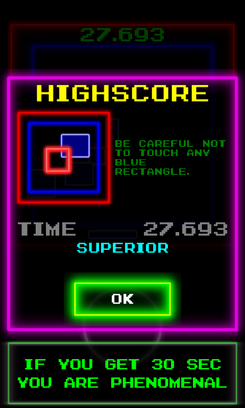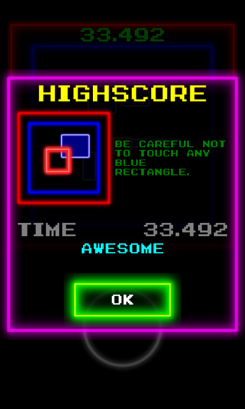 Das Ziel des Spiels ist es, das ROTE Quadrat mit dem Finger zu bewegen.
