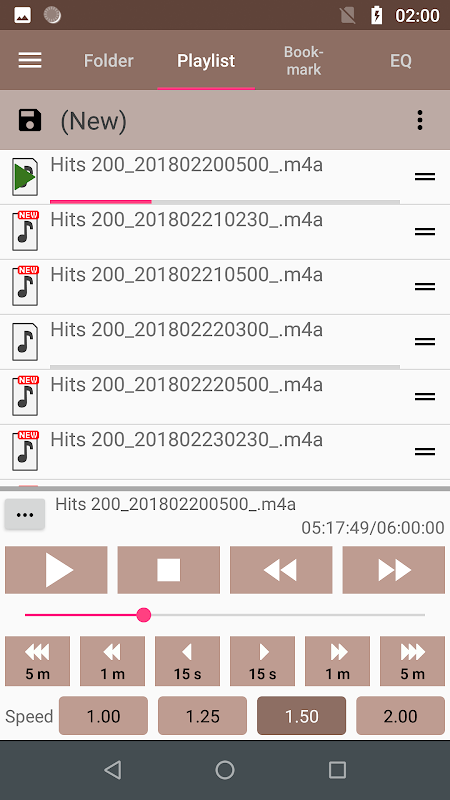 ・ Wenn Sie auf der Registerkarte „Ordner“ auf die Rettungsdatei (CUE + WAV) tippen, wird der Inhalt in der Lesezeichenliste angezeigt