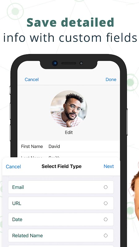 Machen Sie Ihr Profil zu Ihrem eigenen. Mit RELATIONS können Sie benutzerdefinierte Felder zu Ihrem Profil hinzufügen, z. B. wichtige Daten, verschiedene Telefonnummern, Ihre Social-Media-Profile, verwandte Namen usw. Passen Sie Ihr Profil an, um die Informationen anzuzeigen, die für Sie am wichtigsten sind.