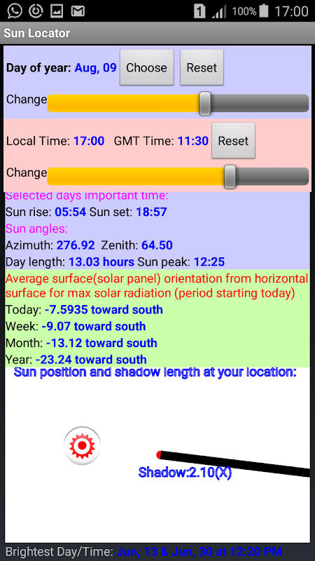 Sun Locator relative Position der Sonne von jedem Ort und Zeit zu finden.