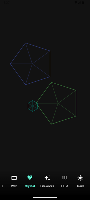 Kleine Punkte bewegen sich zufällig über den Bildschirm. Sobald man den Finger auf den Bildschirm legt, werden sie zu diesem Punkt gezogen. Heben Sie den Finger wieder an, zerstreuen sie sich wieder.
