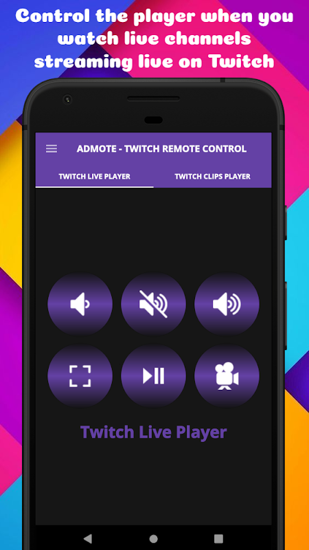 ADMote Control is an easy-to-use app that will turn your Android device into a Remote Control for your PC & laptop so you can control the Twitch Player.
