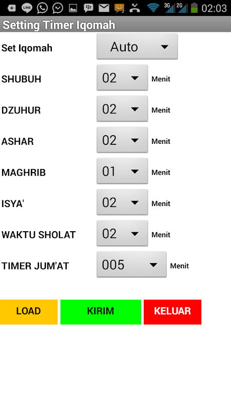 text khusus--> text unk jumatan, text iqomah, dan alarm