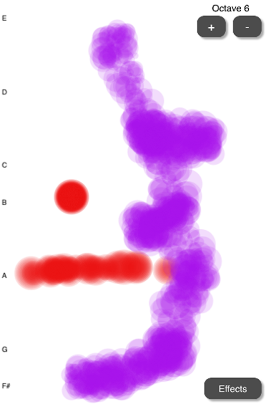 The app includes a novel drawing pad, where a swipe creates both a visual mark and audible sound. As you tap and swipe, you can see and hear your jam partner. These visual drawings help you see the notes that your partner is playing. It's also music as art.