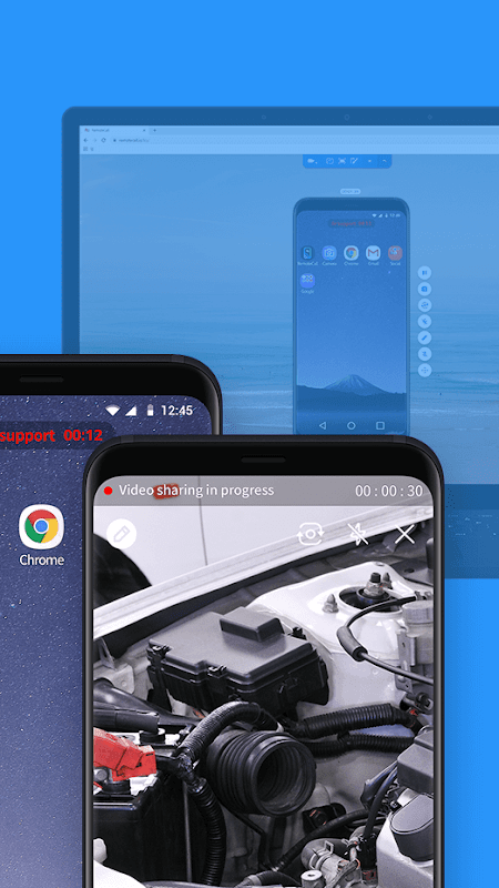 "RemoteCall Remote Support" from Rsupport is a remote support solution that allows agents to share their screens in real time and to quickly diagnose and solve problems by seeing the problem and sites in real time through a mobile camera.